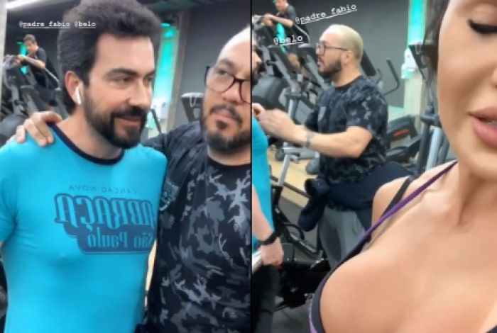 Gracyanne compartilhou o momento do encontro nos stories do seu Instagram. A musa disse que Belo não queria treinar e ela teve que “apelar” ao pedir a ajuda do padre para convencê-lo. ”Se esse milagre não acontecer…”, brincou.