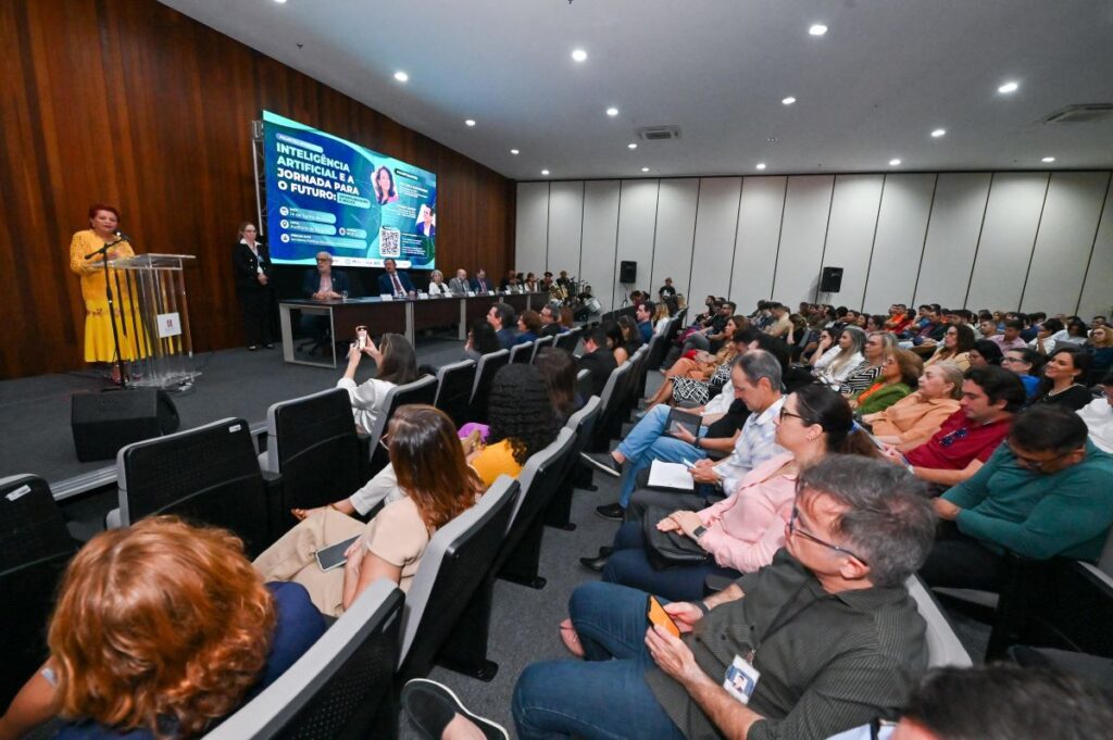 A Rede de Escolas Judiciais e de Governo do Rio Grande do Norte (REJUG-RN) celebrou seu primeiro ano de atividades com o evento “Inteligência Artificial e a Jornada para o Futuro: Oportunidades e Riscos”, realizado na manhã desta sexta-feira, 14/06, no auditório da Escola de Magistratura do RN (Esmarn). O encontro reuniu autoridades, magistrados, servidores públicos, estudantes e membros da sociedade em geral para uma manhã de imersão em conhecimento sobre as aplicações e implicações da Inteligência Artificial (IA) nas rotinas de trabalho e vida cotidiana das pessoas, com palestras interativas ministradas pelos professores-doutores Ana Carla Bliacheriene e Luciano Vieira de Araújo, da Universidade de São Paulo, ambos coordenadores do grupo de pesquisa USP – SmartCietiesBR.